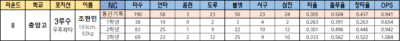 | 8 | 충암고 | 3루수 우투좌타 |