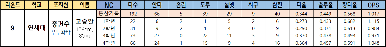 | 9 | 연세대 | 중견수 우투좌타 |
