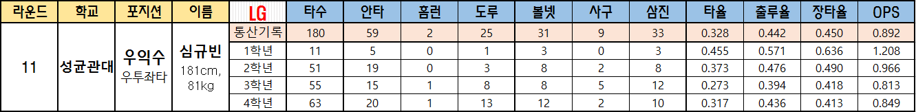| 11 | 성균관대 | 우익수 우투좌타 |