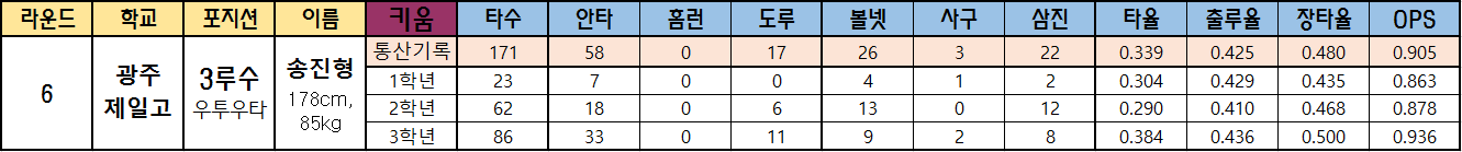 6. 송진형 (광주제일고 내야수)