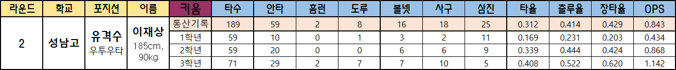 | 2 | 성남고 | 유격수 우투우타 |