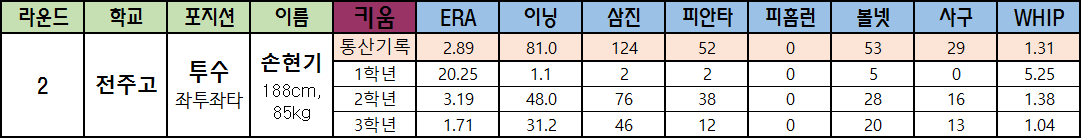 | 2 | 전주고 | 투수 좌투좌타 |