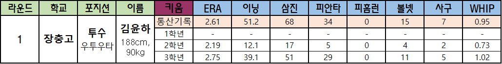 | 1 | 장충고 | 투수 우투우타 |