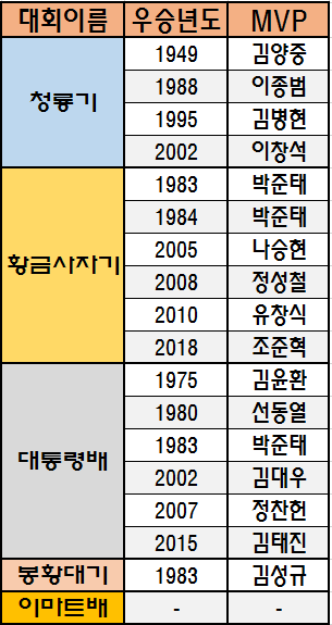 **2022 10 09 업데이트** 고교야구 메이저대회 우승/MVP 추가 (청룡기, 황금사자기, 대통령배, 봉황대기, 협회장기-이마트배) **23.10.18 업데이트 수치 업데이트와 수정17회 우승 너무 낮은 수치와