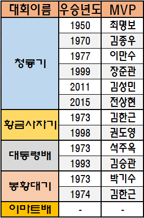 | 삼성 | 김용국 | 8.67 | - | - | - | - |