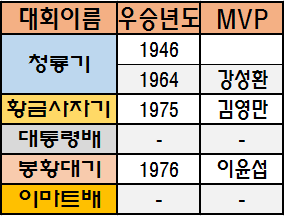 *1946년 청룡기는 개인수상이 없었습니다.