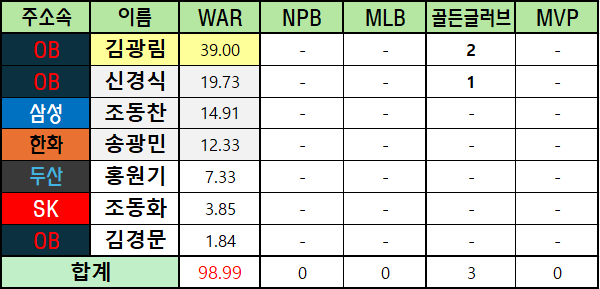 | OB | 김광림 | 39.00 | - | - | 2 | - |