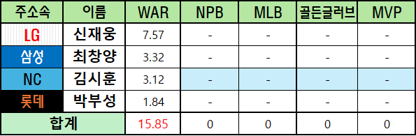 *메이저리그 WAR은 bWAR와 fWAR의 평균값으로 표기했습니다.