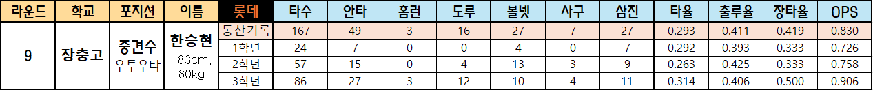 | 9 | 장충고 | 중견수 우투우타 |