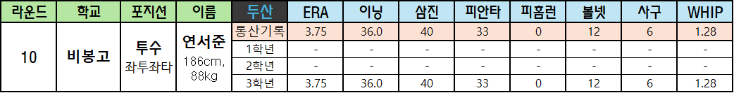 | 10 | 비봉고 | 투수 좌투좌타 |