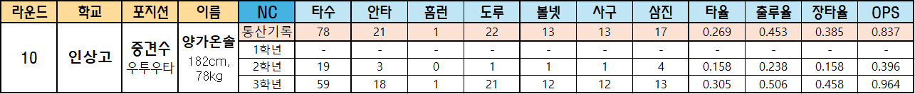 10. 양가온솔 (인상고 외야수)