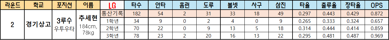 | 2 | 경기상고 | 3루수 우투우타 |