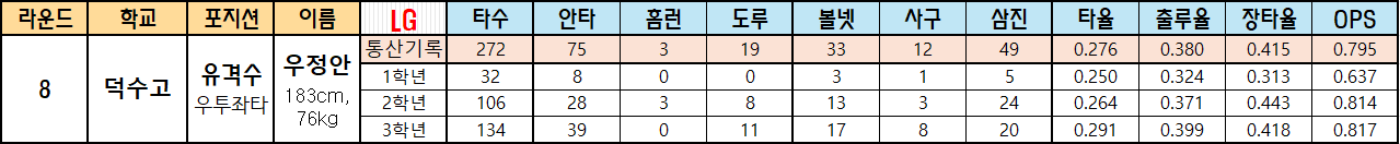 | 8 | 덕수고 | 유격수 우투좌타 |