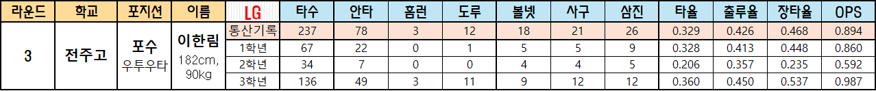 3. 이한림 (전주고 포수)