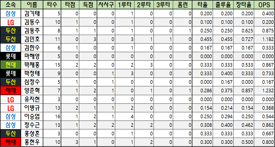 LG 유지현 3 0 0 0 0 0 0 0 0.000 0.000 0.000 0.000
