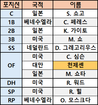 | 2024 프리미어 12 네덜란드 최종 명단 및 기록 24.11.09 (2) | 2024.10.23 |