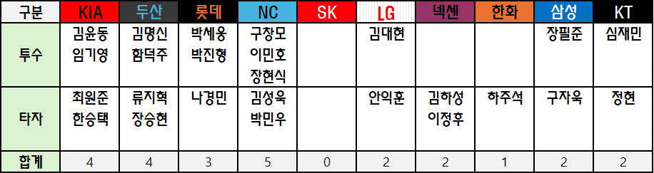 2017년 11월 16일~19일까지 열렸던 1회 APBC의 24세 이하 대표팀 명단입니다.