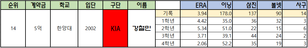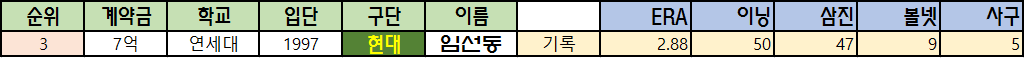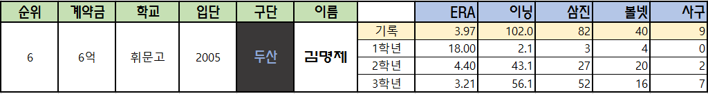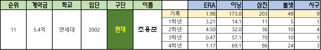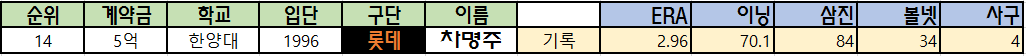 1996년 전의 대학야구 기록은 찾을 수가 없네요.. 임선동, 문동환, 차명주, 손민한의 기록이 부족한 점 양해바랍니다..