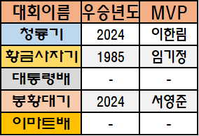 | 쌍방울 | 김만후 | 2.82 | - | - | - | - |