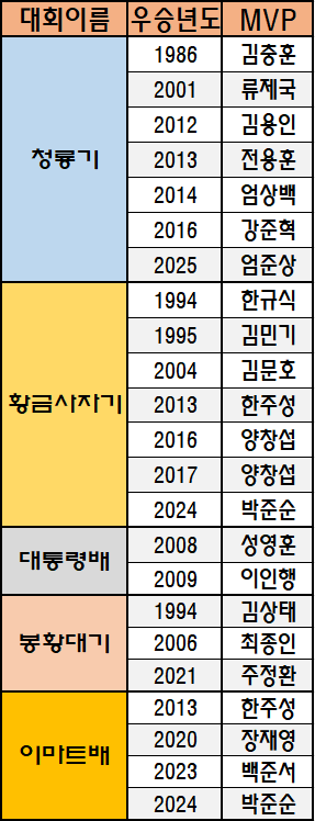 고교야구 메이저대회 우승/MVP 추가 (청룡기, 황금사자기, 대통령배, 봉황대기, 협회장기-이마트배)