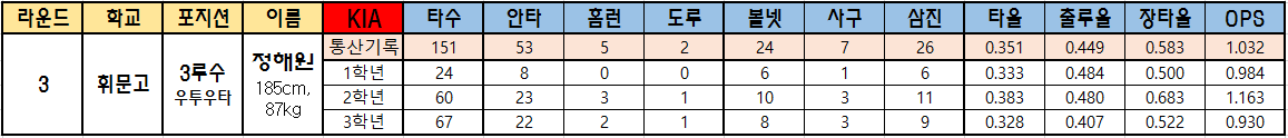 | 3 | 휘문고 | 3루수 우투우타 |