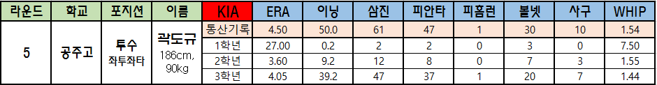 | 5 | 공주고 | 투수 좌투좌타 |