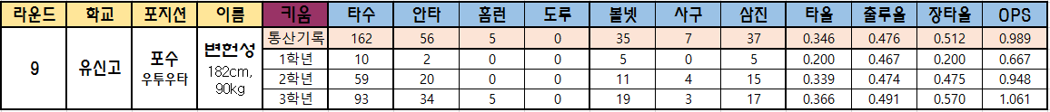 | 9 | 유신고 | 포수 우투우타 |