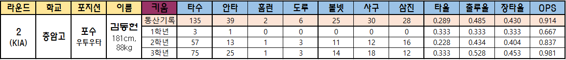 충암고 | 포수 우투우타 |