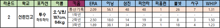 | 2 | 선린인고 | 투수 좌투좌타 |