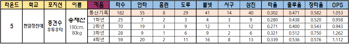 | 5 | 한일장신대 | 중견수 우투우타 |