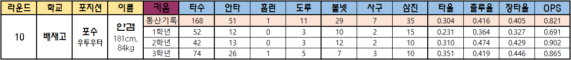 10. 안겸 (배재고 포수)