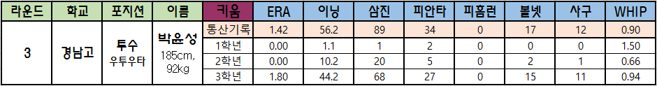 | 3 | 경남고 | 투수 우투우타 |