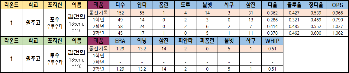 1. 김건희 (원주고 포수 + 투수)