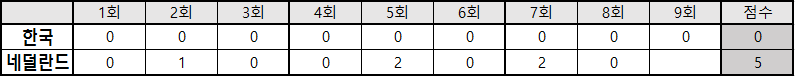 2013 WBC 1라운드 vs네덜란드 기록 (0:5 패)