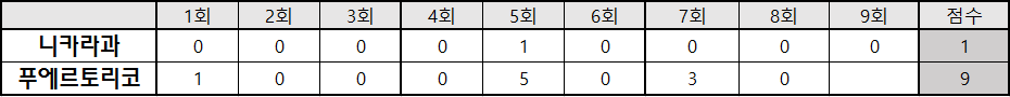 2023 WBC 1라운드 D조 니카라과 [1] : [9] 푸에르토리코 기록
